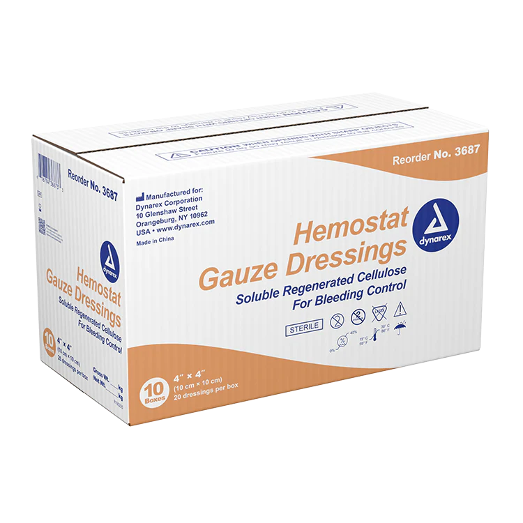 The Dynarex DynaSafety Hemostat Gauze Dressing is a premium water-soluble dressing designed to help protect wounds and manage bleeding.