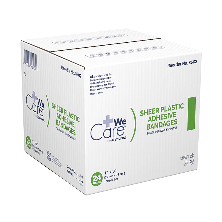 Dynarex Sheer Plastic Adhesive Bandages, Sterile - 100ea/bx, 24bxs/cs (2400 Count)—