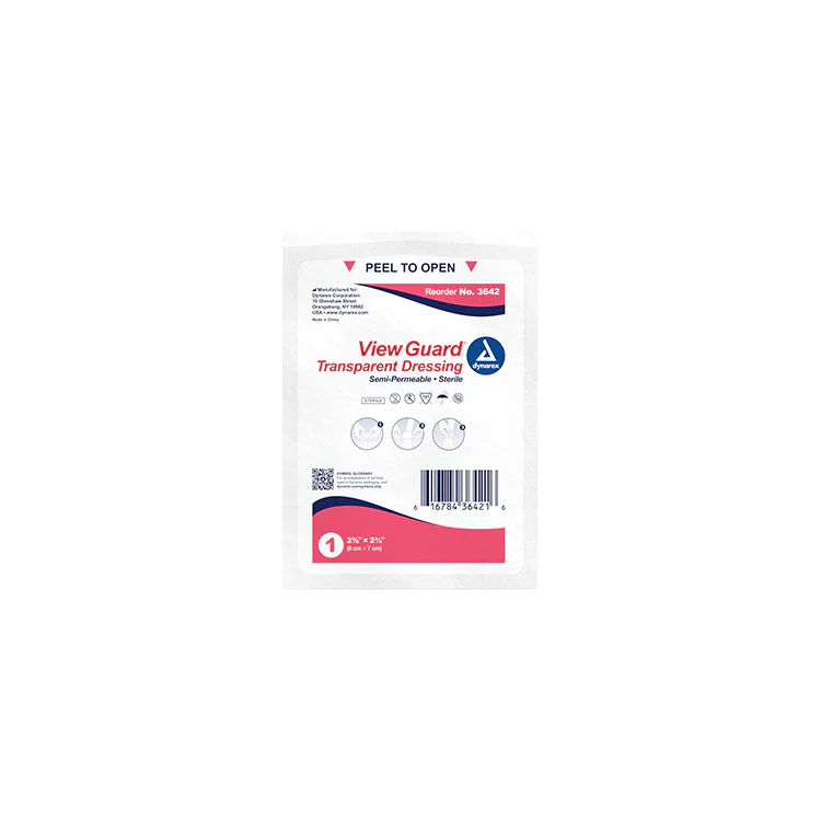 Dynarex View Guard Transparent Dressings are semi-permeable dressings designed to protect wounds, IV sites, and surgical incisions. These premium-quality, sheer Dressings are designed to conform to body contours for a secure fit. Â